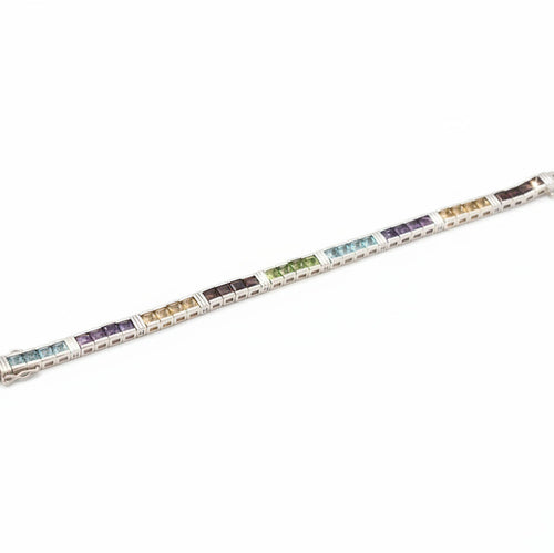 Oval multi color stone vintage Silver Bracelet -